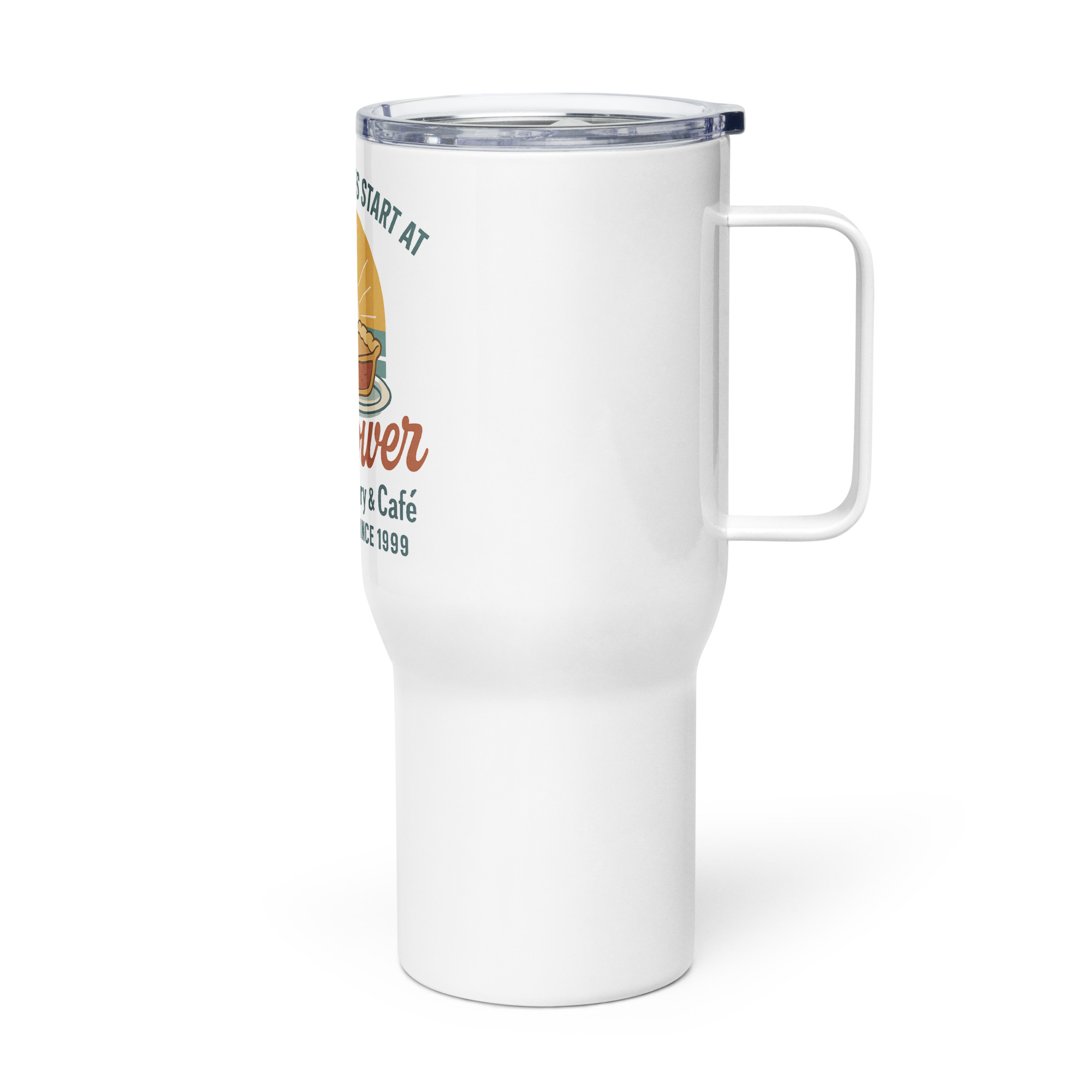 Sip in style and comfort with an elevated travel mug. With its sleek and durable design, you’ll love taking this mug wherever you go. It fits into most car cup holders and has a spill-proof plastic lid. Commute to work or go on new adventures—this travel mug will keep your beverage safe and at just the right temperature.